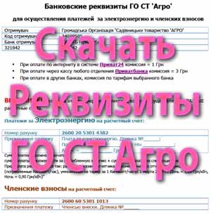 - Ранее открытые расчетные счета ГО СТ Агро в банке 'Райфайзен банк Аваль' не действительны. Поступающие на эти счета платежи не засчитываются на Ваш участок.